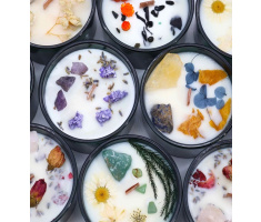 Každá kryštáľová magická sviečka je umiestnená v tmavozelenej sklenenej nádobe s rustikálnym dreveným knôtom, je jedinečným majstrovským dielom. Odhaľte kúzlo vo vnútri, keď objavíte drahokam sprevádzaný posypom menších úlomkov drahokamu, čím vytvoríte oslnivú prehliadku prírodných divov. Podstatu týchto sviečok ešte umocňujú jemné suché kvety.